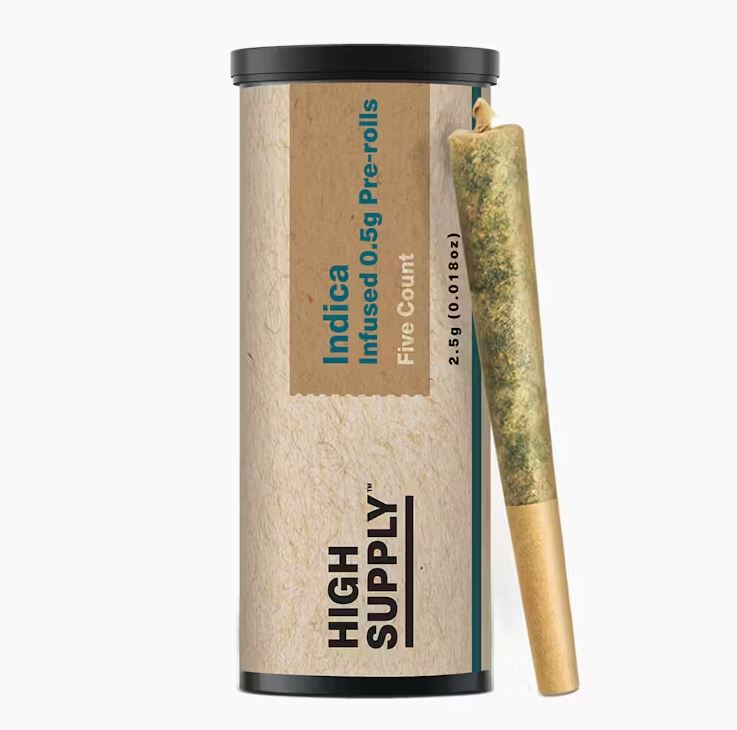Infused Pre-Rolls from High Supply marries potency and portability, at a sweet price. Five 0.5g Pre-Rolls per package, at a 70:30 blend of lab-tested flower and sand of the same dominance. Each joint’s a one-way trip to a good time. Burn responsibly.